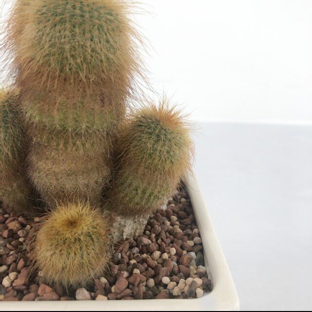 特徴:緑色に金色の柔らかい刺が綺麗なサボテン。