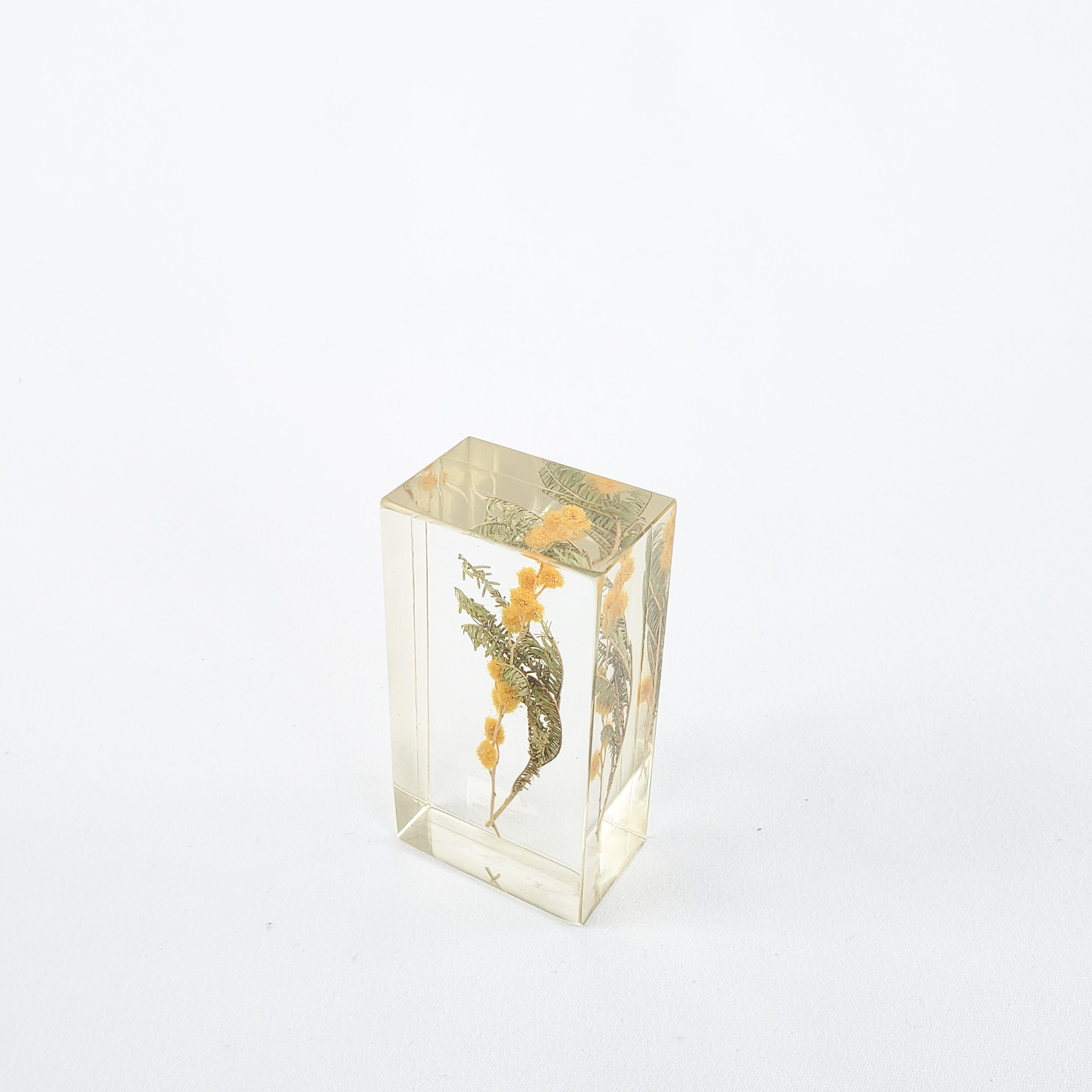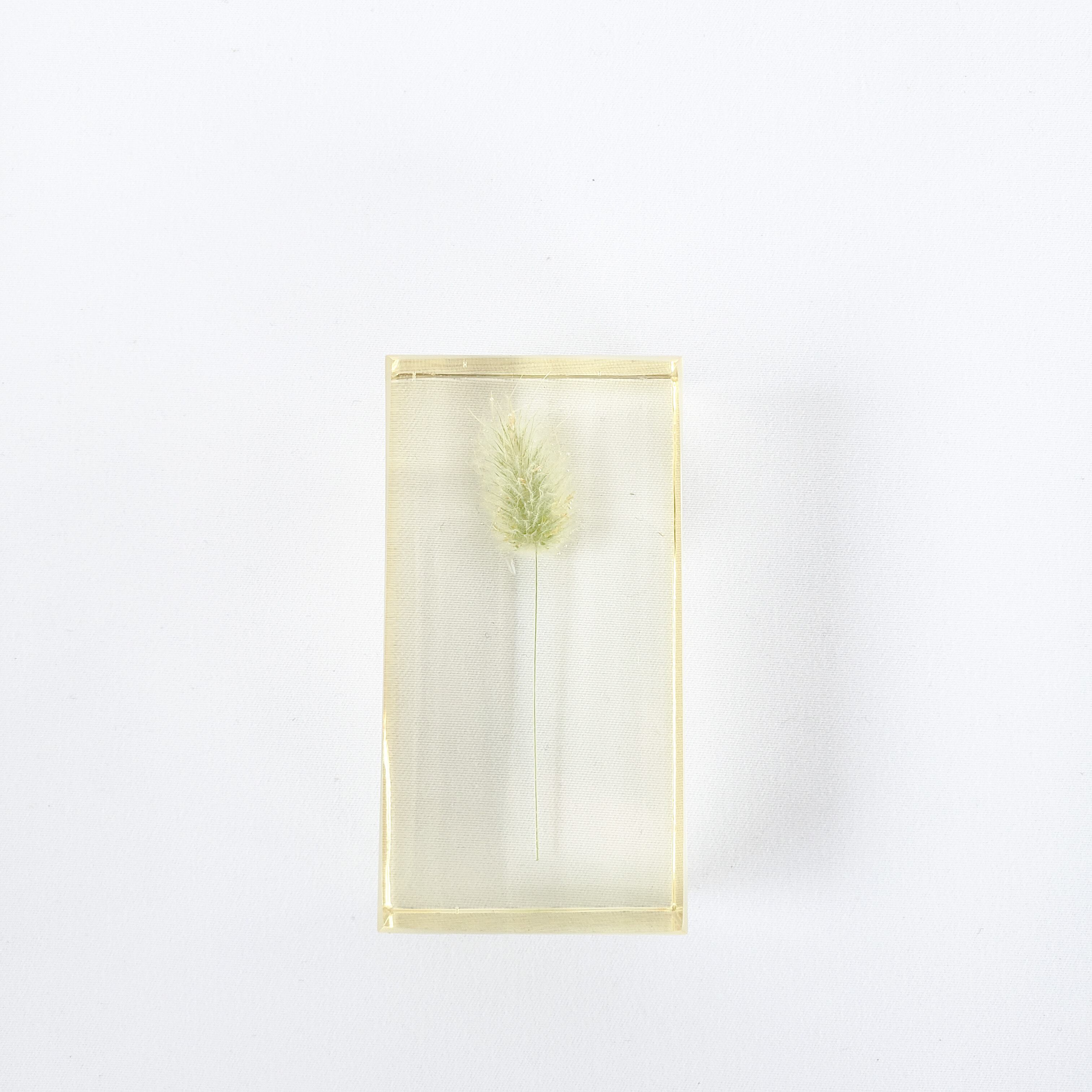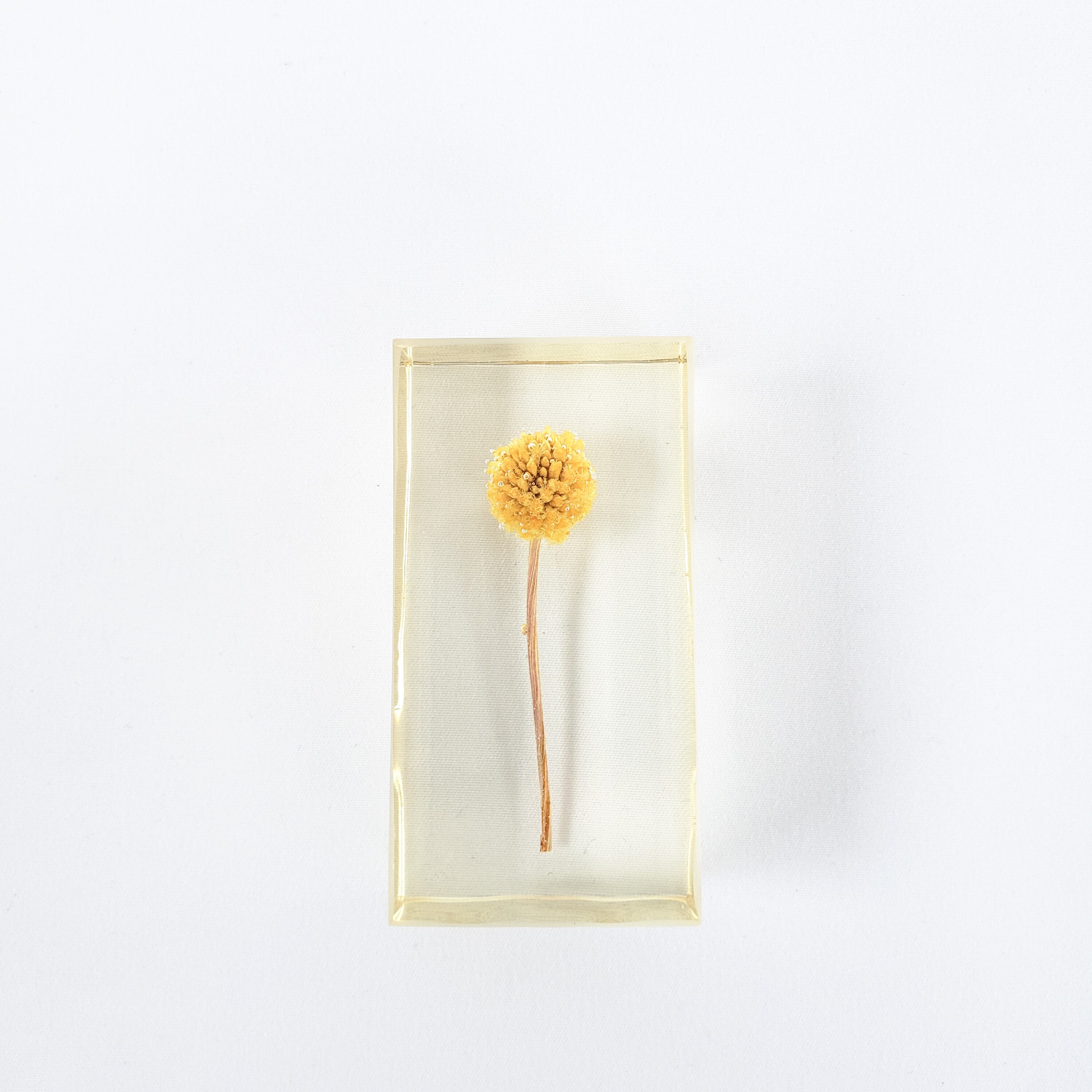 ドライフラワーを一つ一つ樹脂に閉じ込め