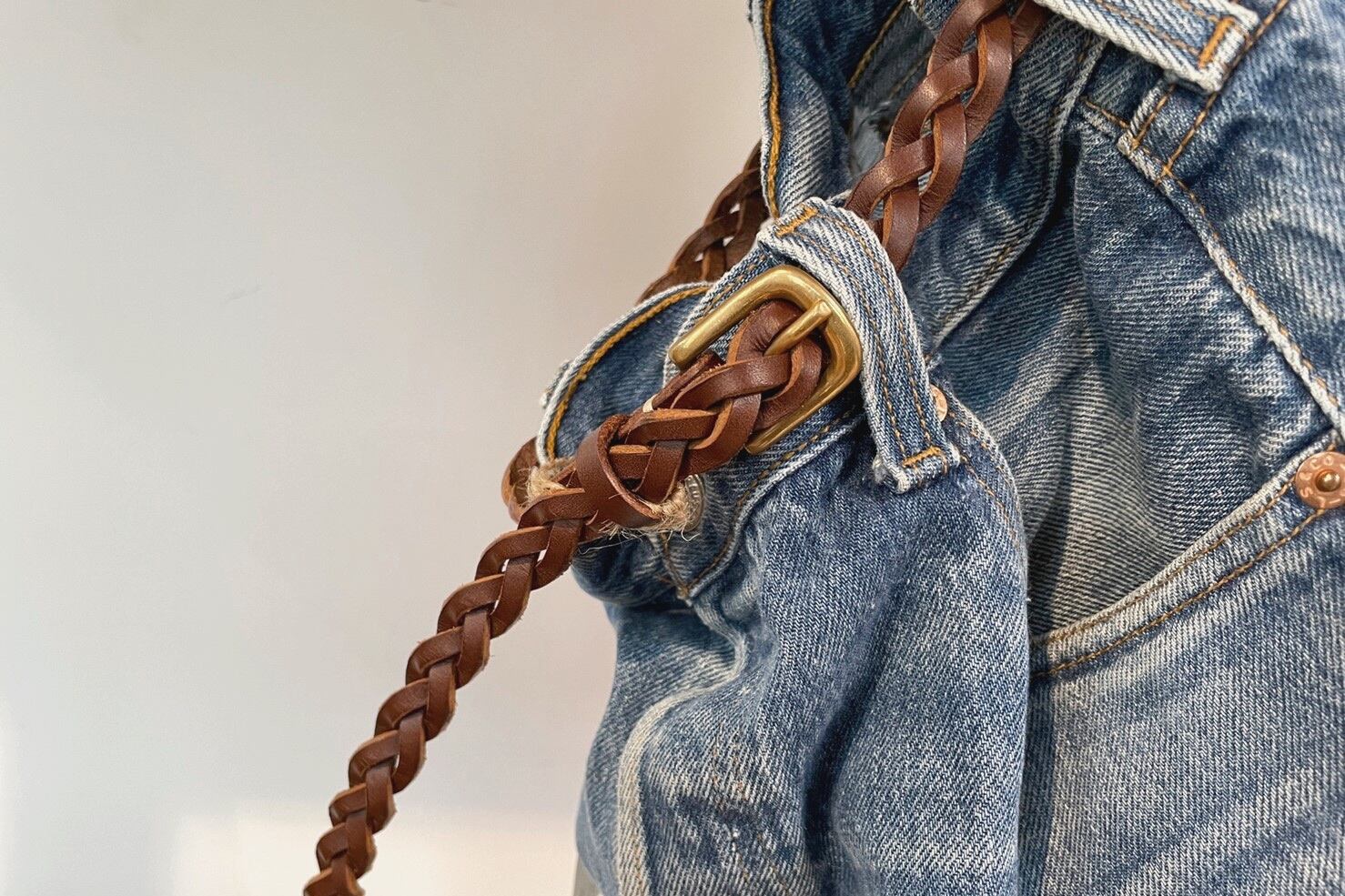 デザイナーの手によって一つ一つ編み込まれた牛革のレザーベルトです。